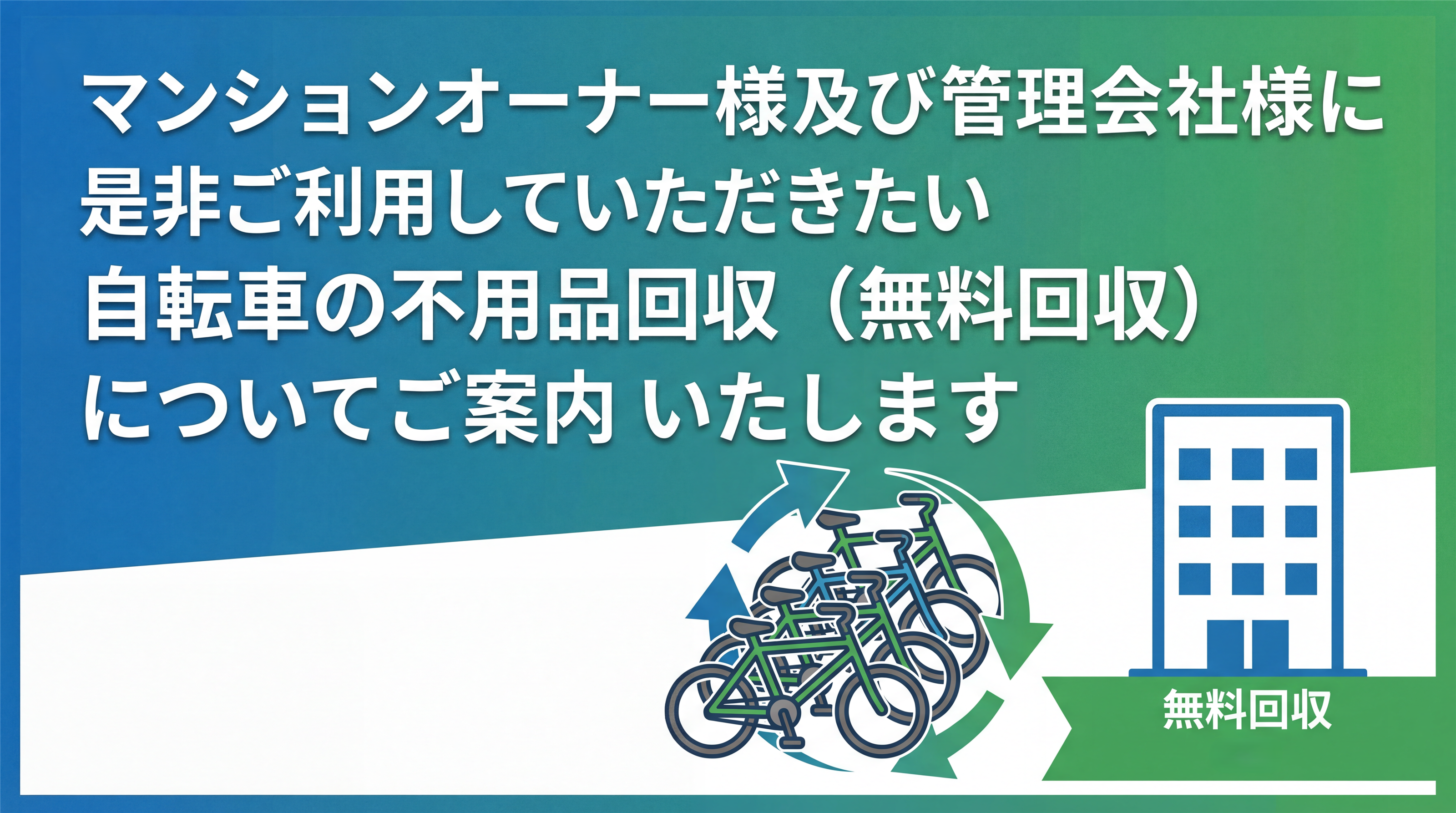 マンションオーナー様及び管理会社様に是非ご利用していただきたい自転車の不用品回収(無料回収)についてご案内いたします。